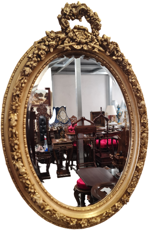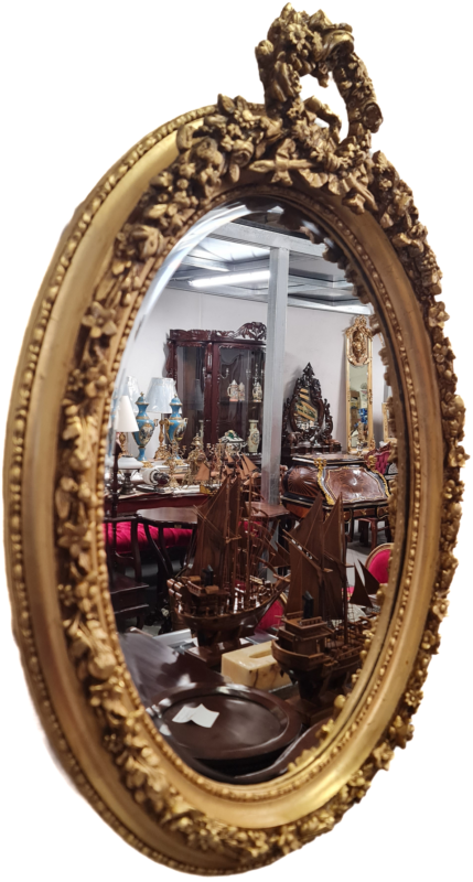 Ново овално дърворезбовано огледало с фасет и златен варак.