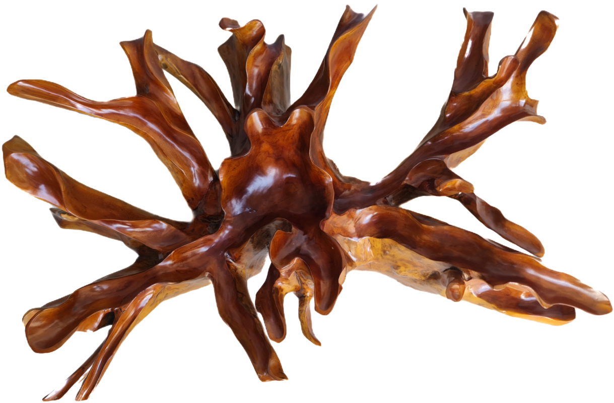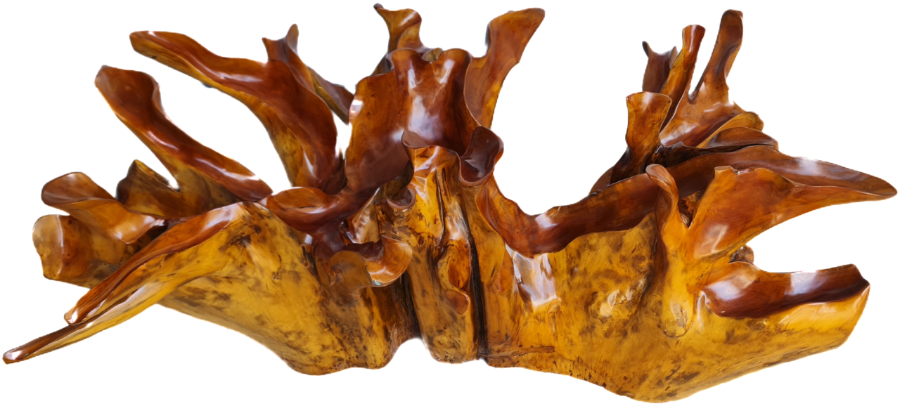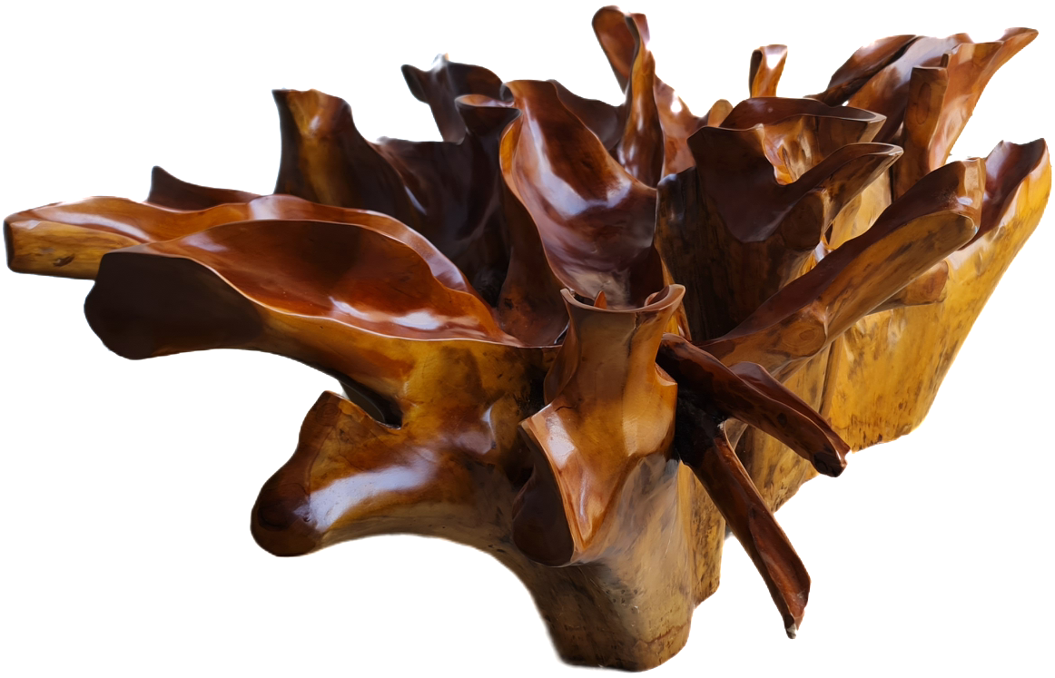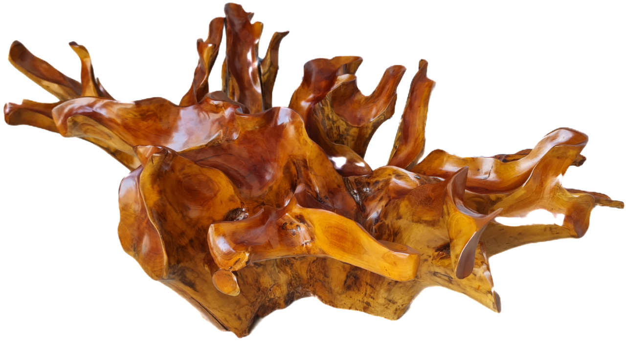 Изключителна красива холна маса от Naturally тиково дърво – корен под формата на цвете, финно обработено с закалено стъкло внос от Индонезия.